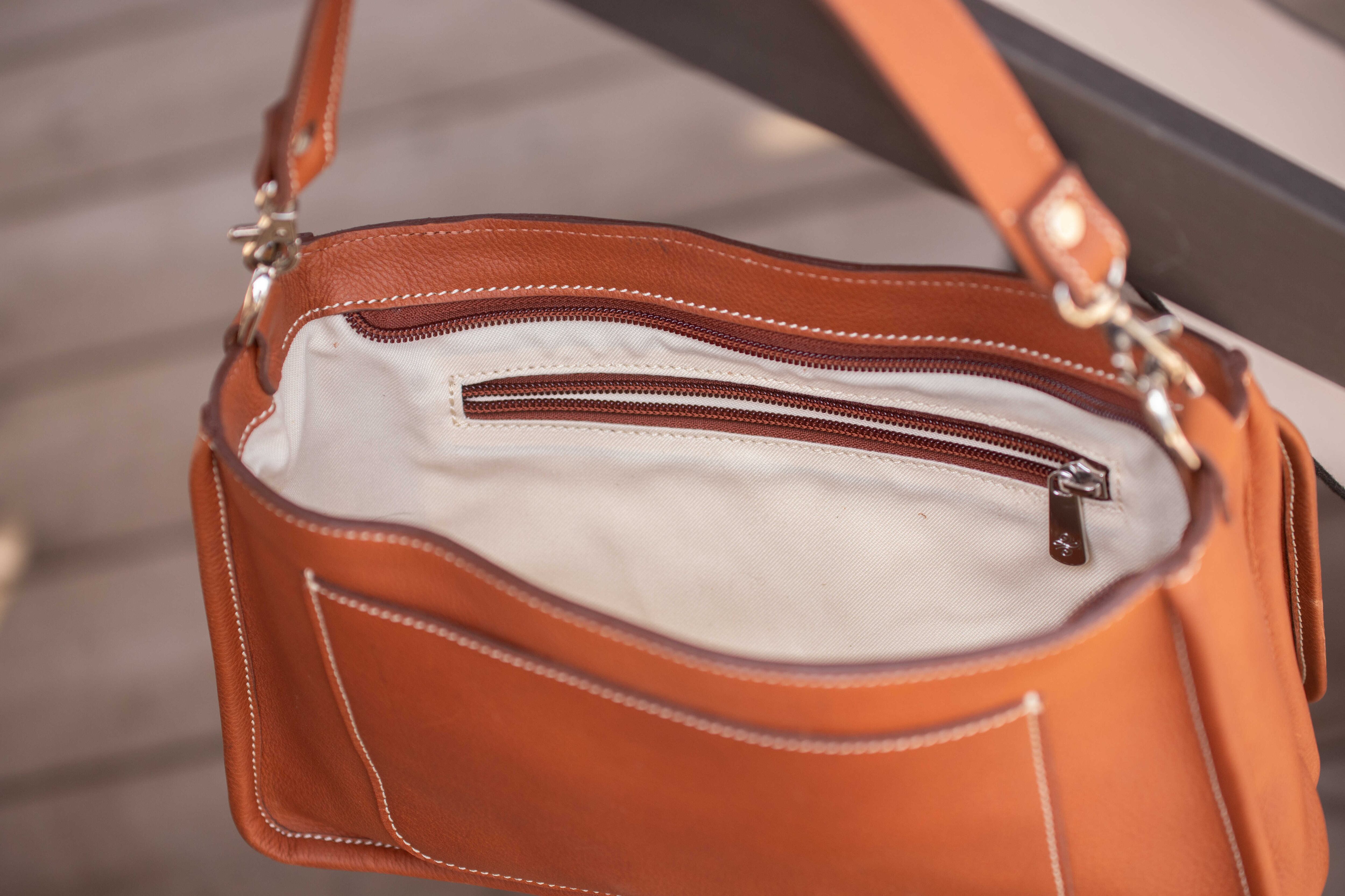 肩掛けにちょうどいい平たいハンドルに加えて、取り外し可能なロングストラップも付属。ショルダーでもクロスボディでも使える2WAY仕様です。