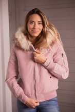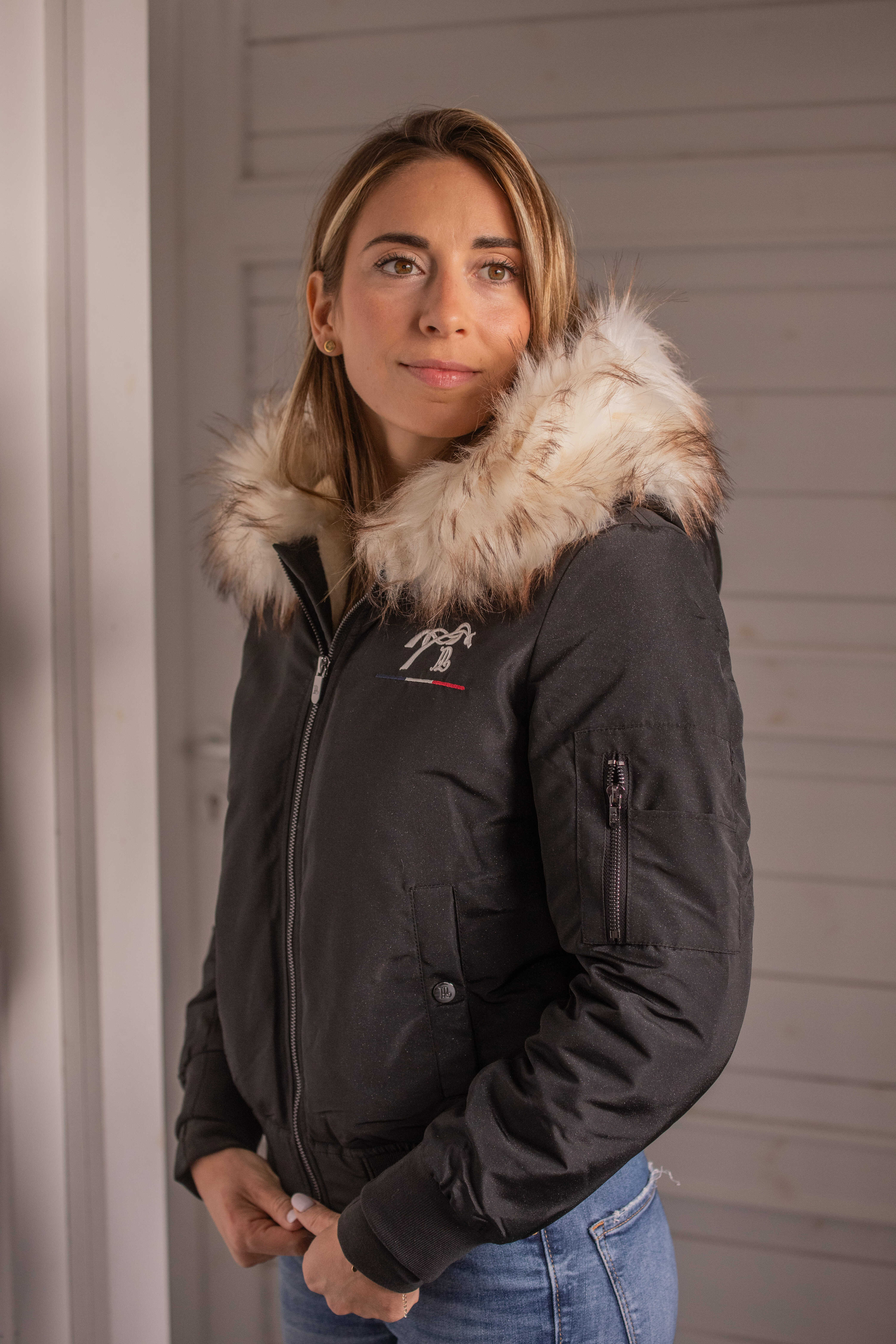 フロントはファスナー開閉で、フェイクファー付きのフードが季節感をプラス。
