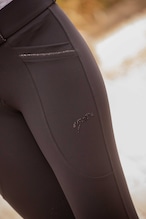ストレッチ素材を使用していて快適な履き心地。膝の内側には滑り止めの補強付きで、騎乗時の安定感もしっかりサポート。