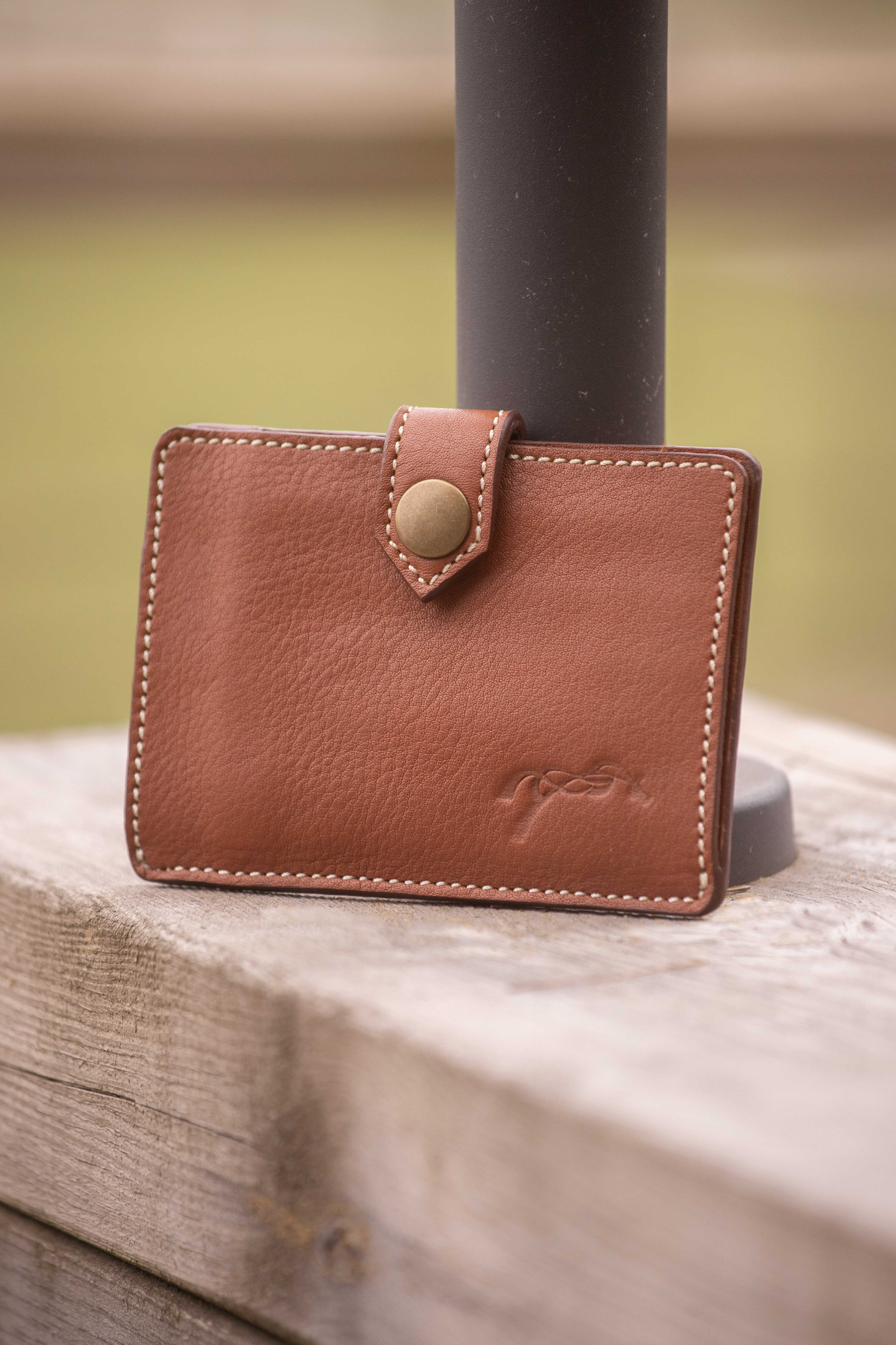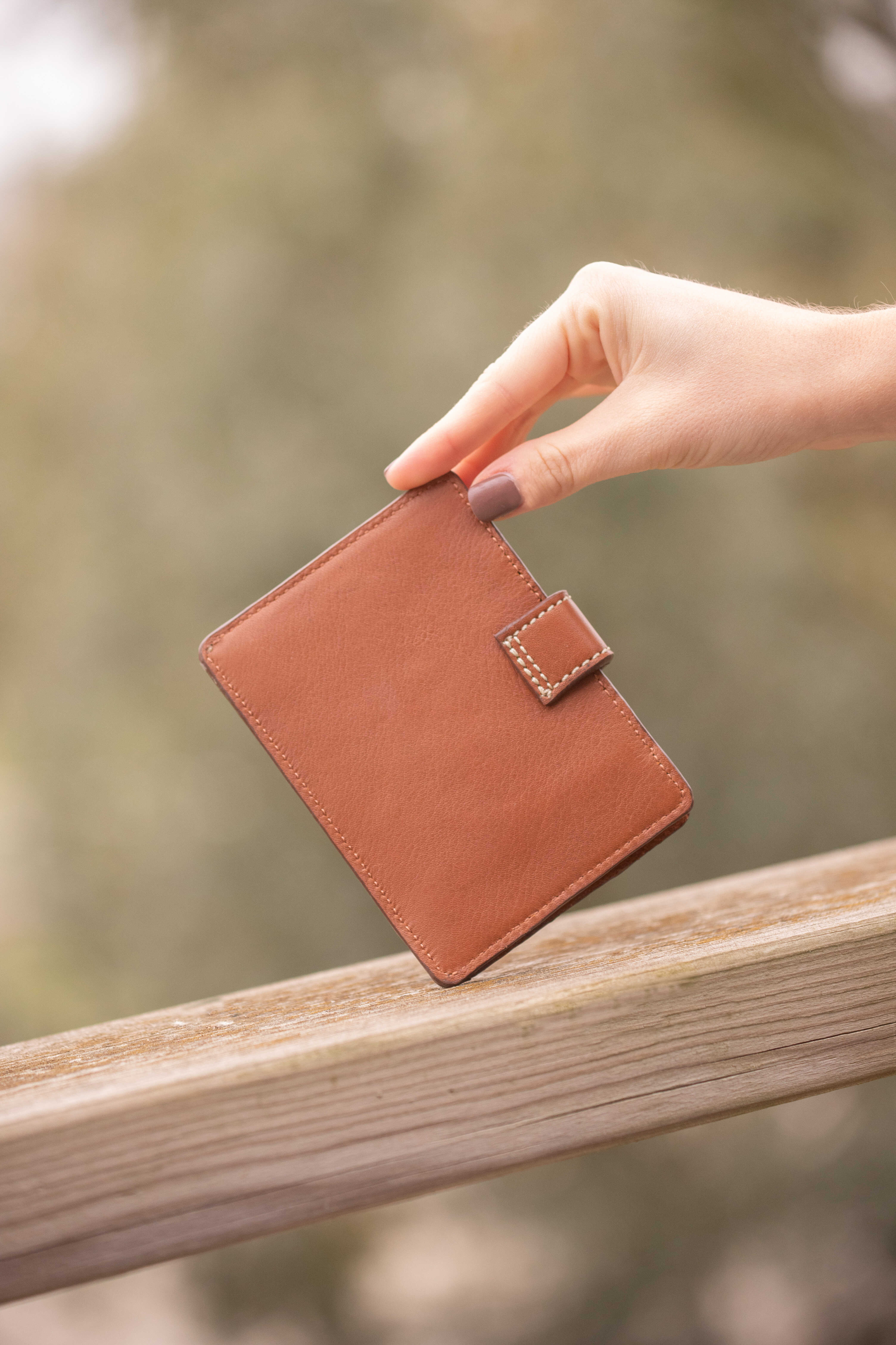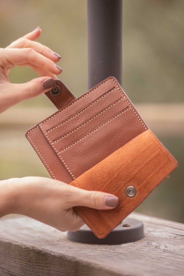 小さなブックレットのようなデザインで、スナップボタンで二つ折りに閉じる仕様になっています。