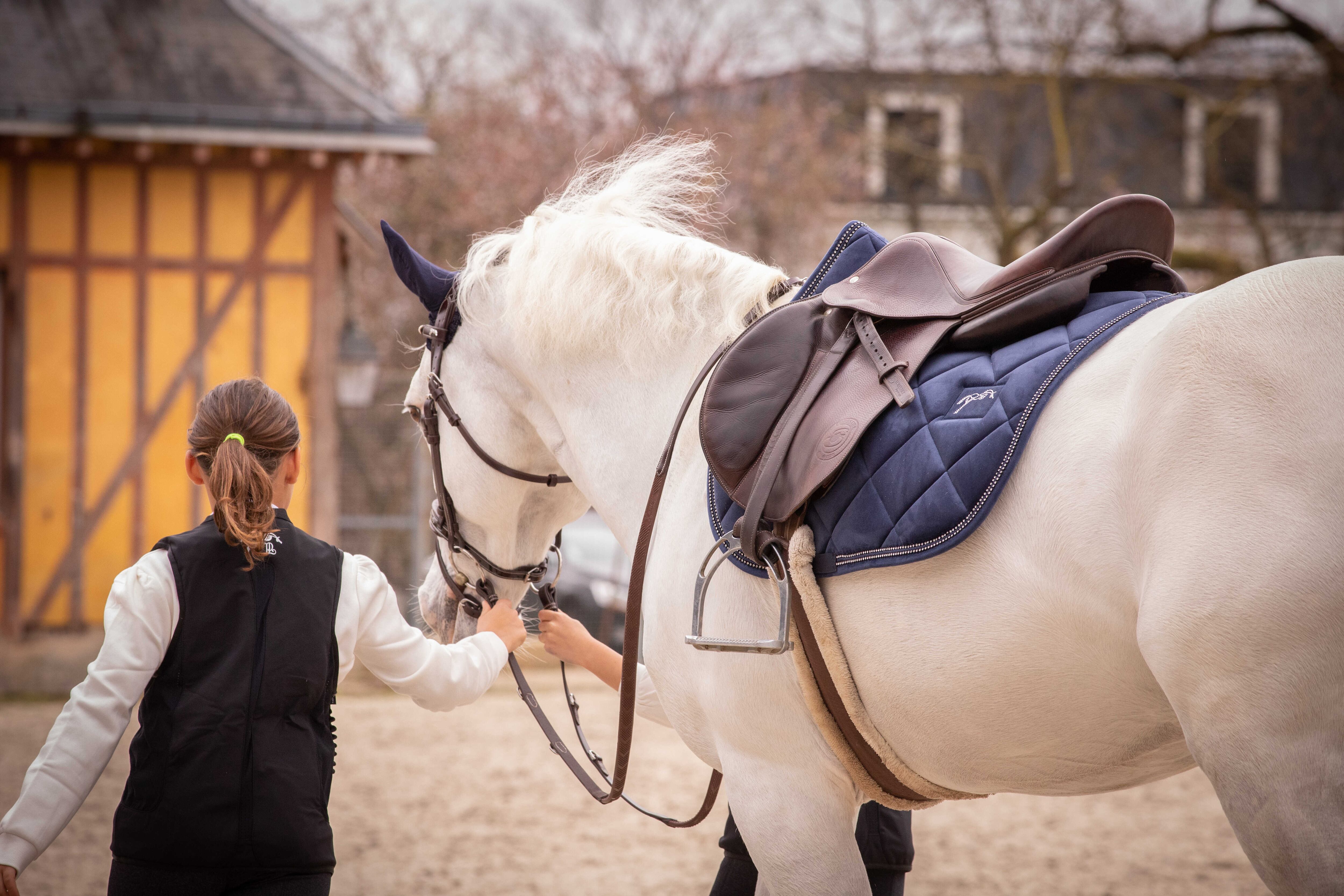 ネイビーとブラックのカラーは同シリーズのイヤーネットと完璧にコーディネートでき、競技会スタイルにもぴったりです。