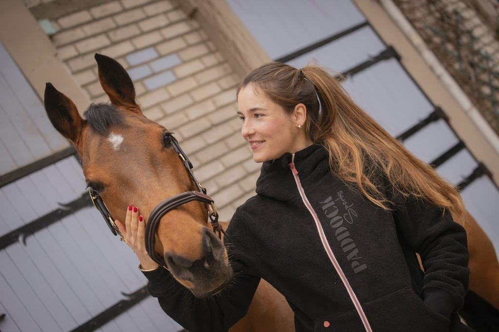 男女兼用のユニセックスモデルで、厩舎でも街でも活躍する万能な一枚。