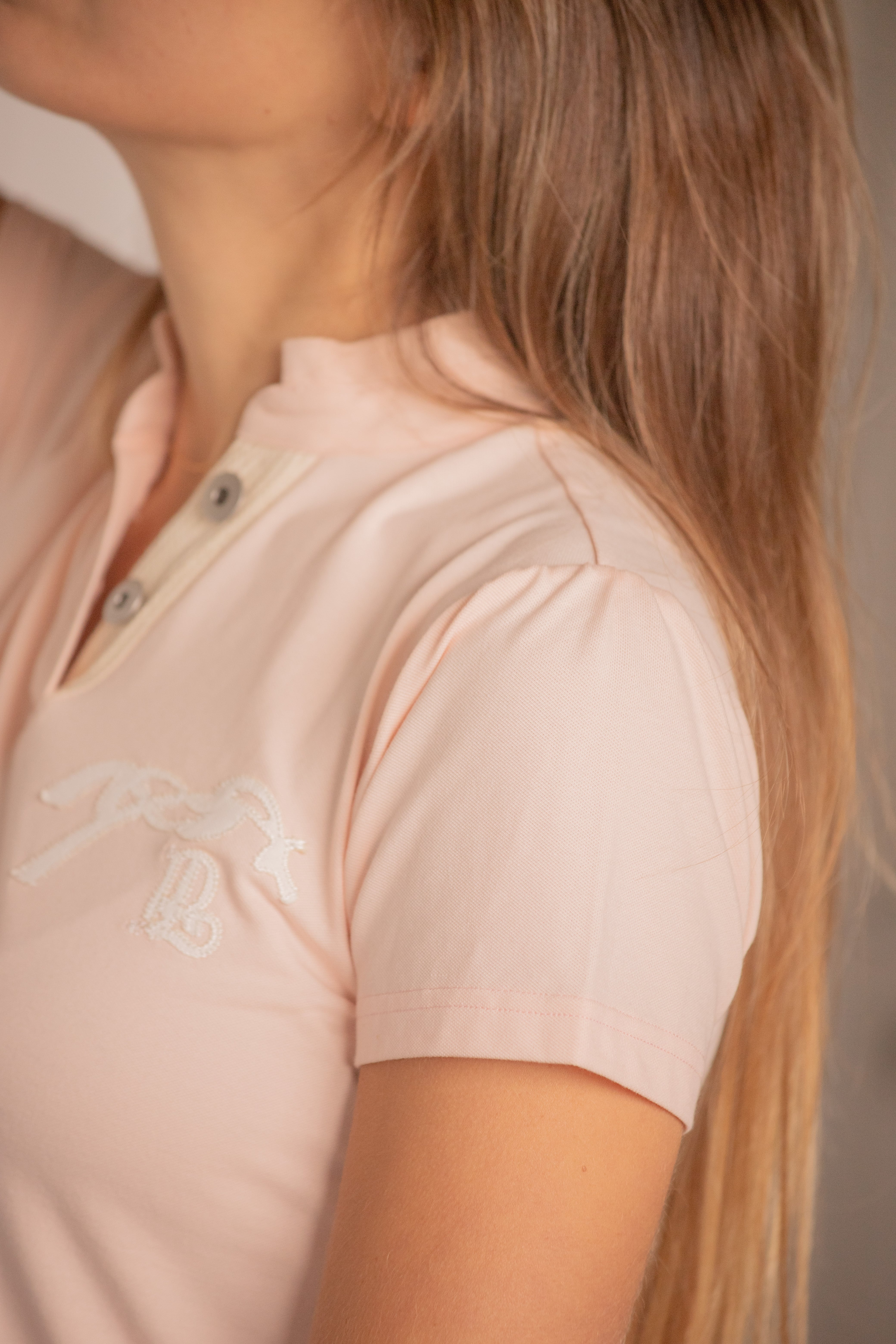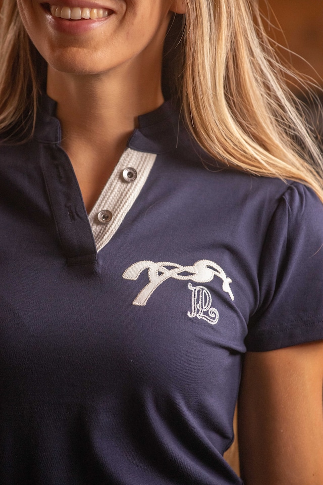 上質なコットンピケ素材を使用した、女性らしさが際立つ半袖ポロシャツ「Victorine」です。