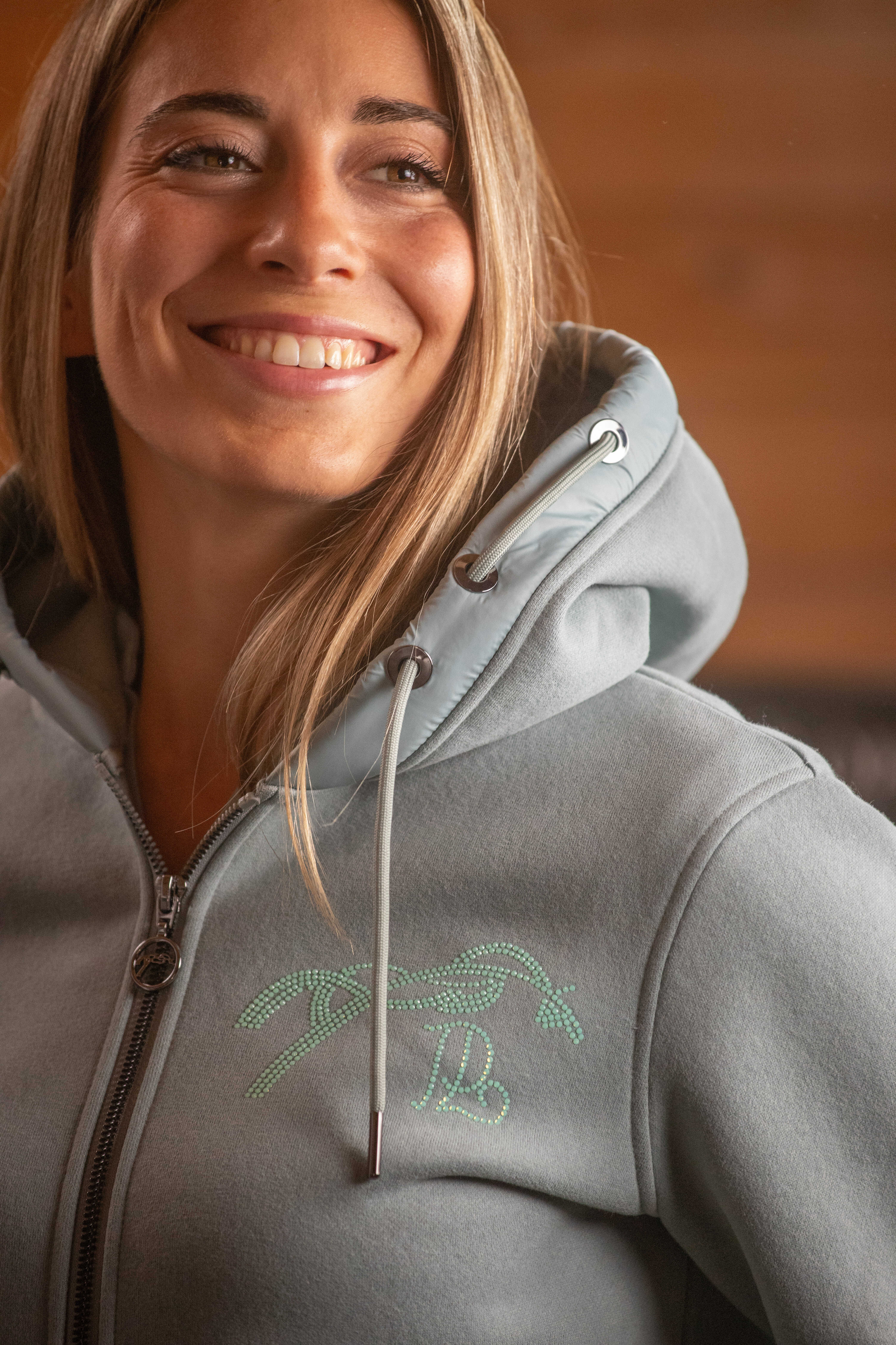 胸元にはラインストーンで表現されたPénélopeロゴを配し、スポーツウェアにさりげない華やかさを添えています。