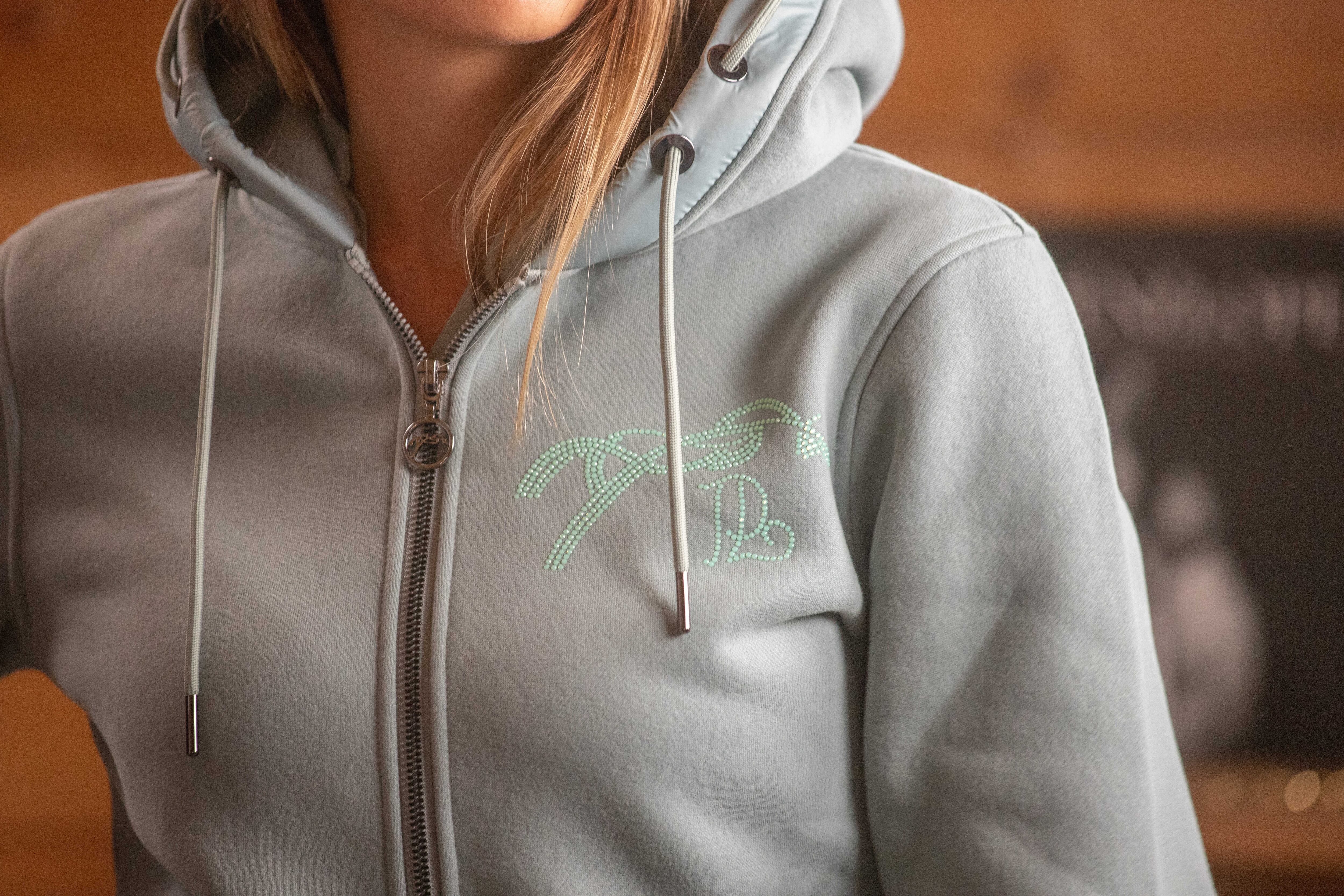 フロントジップ仕様で機能性とデザイン性を兼ね備えた、パーカー「Fluore」です。