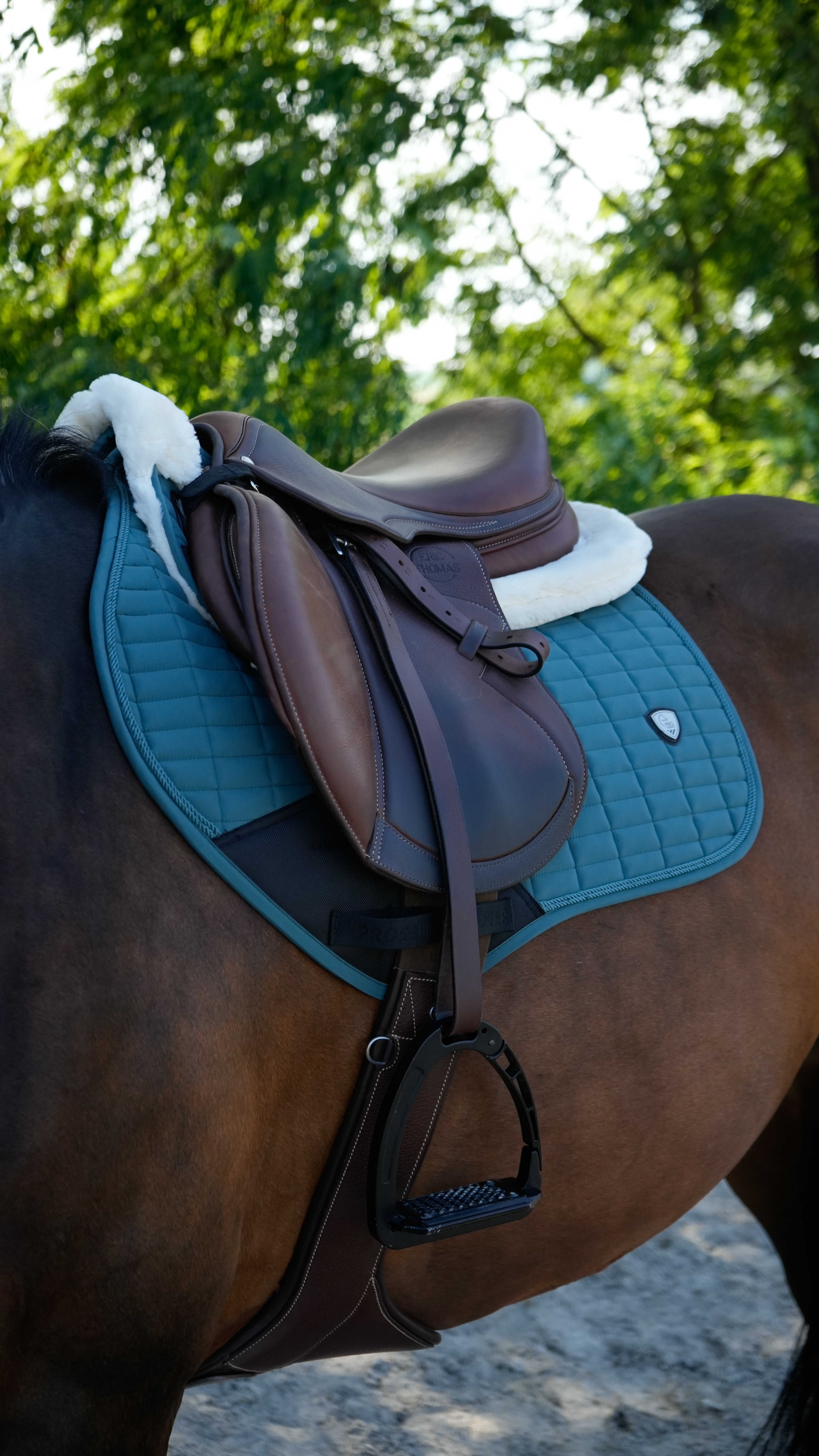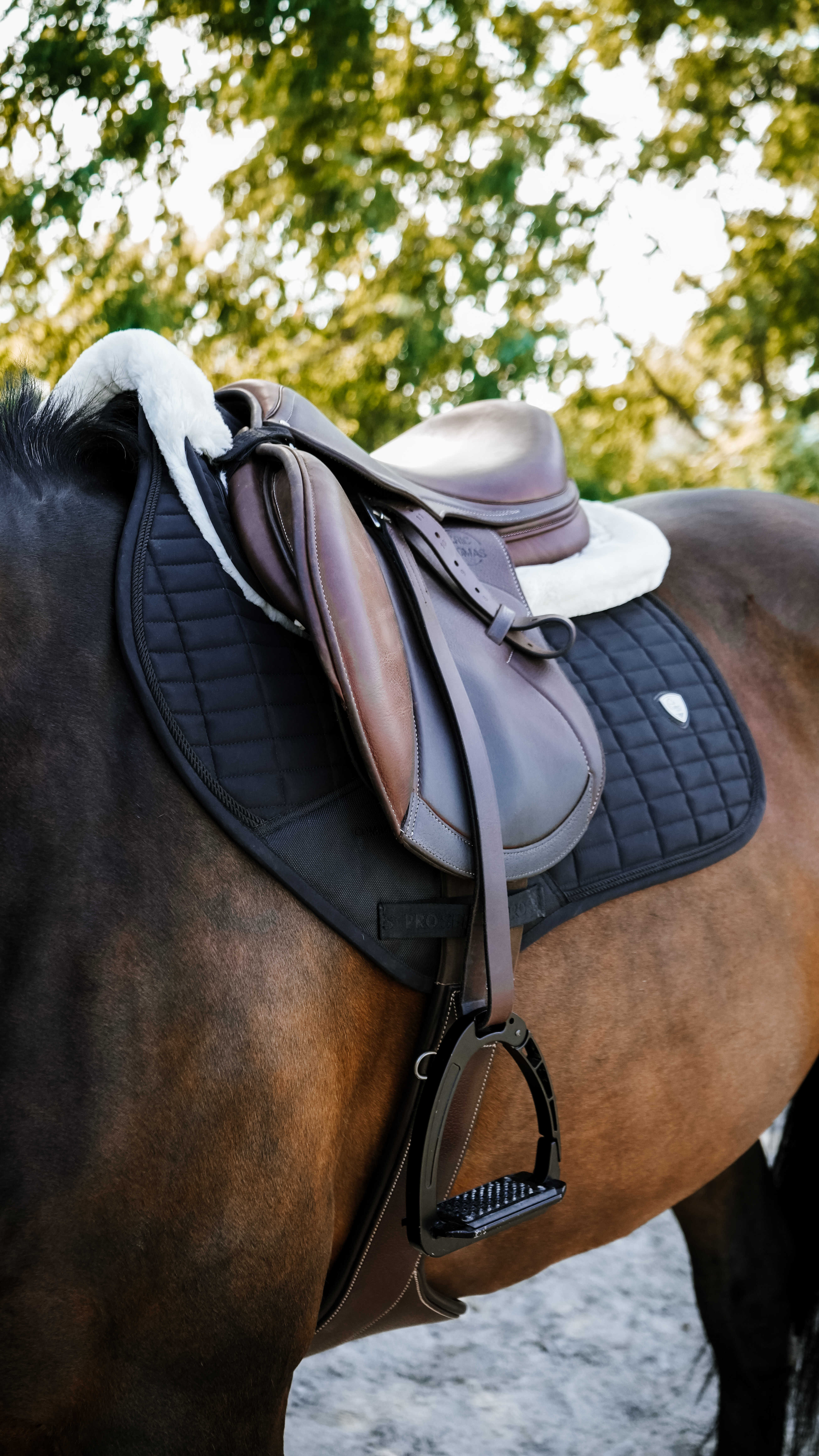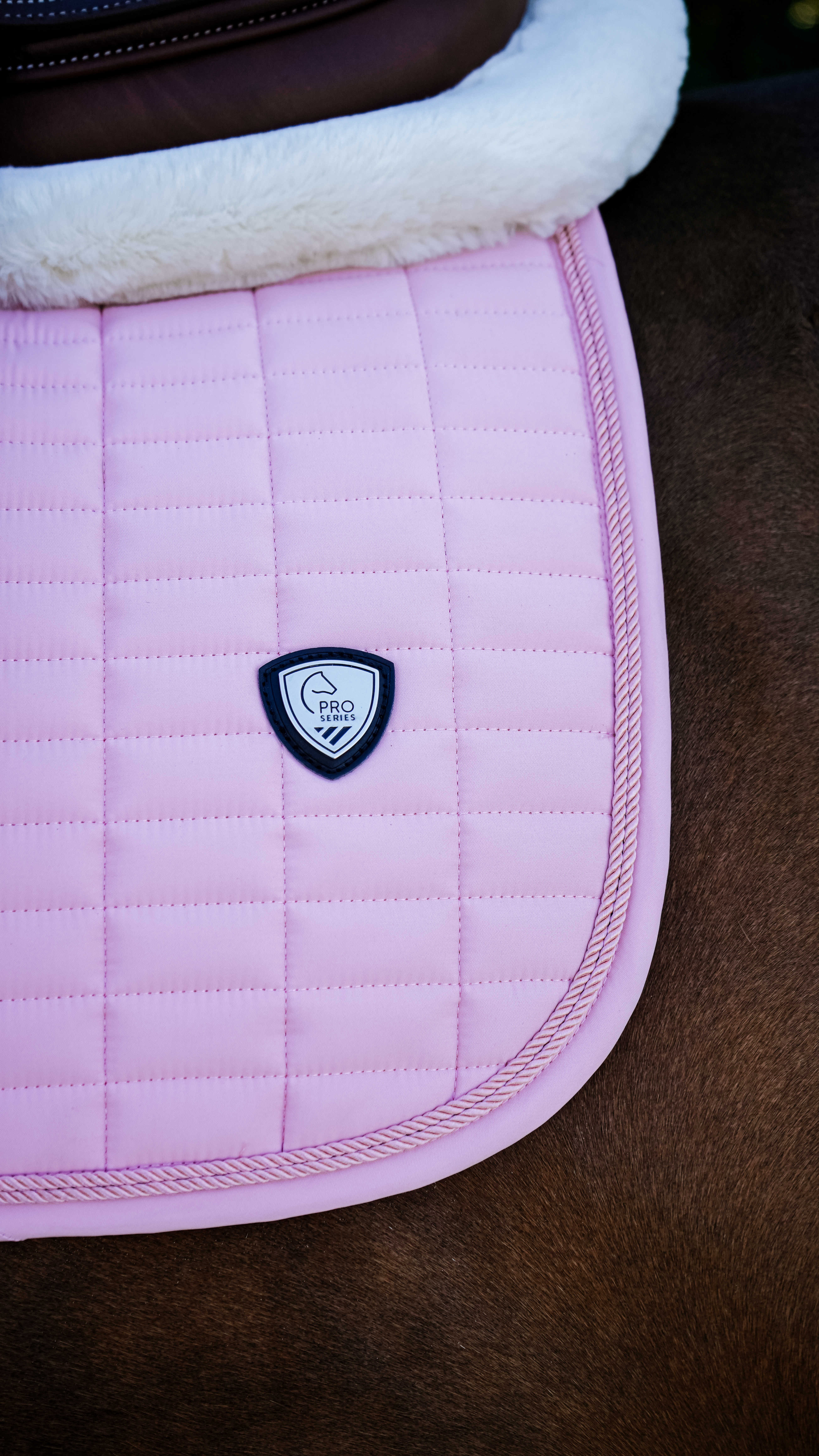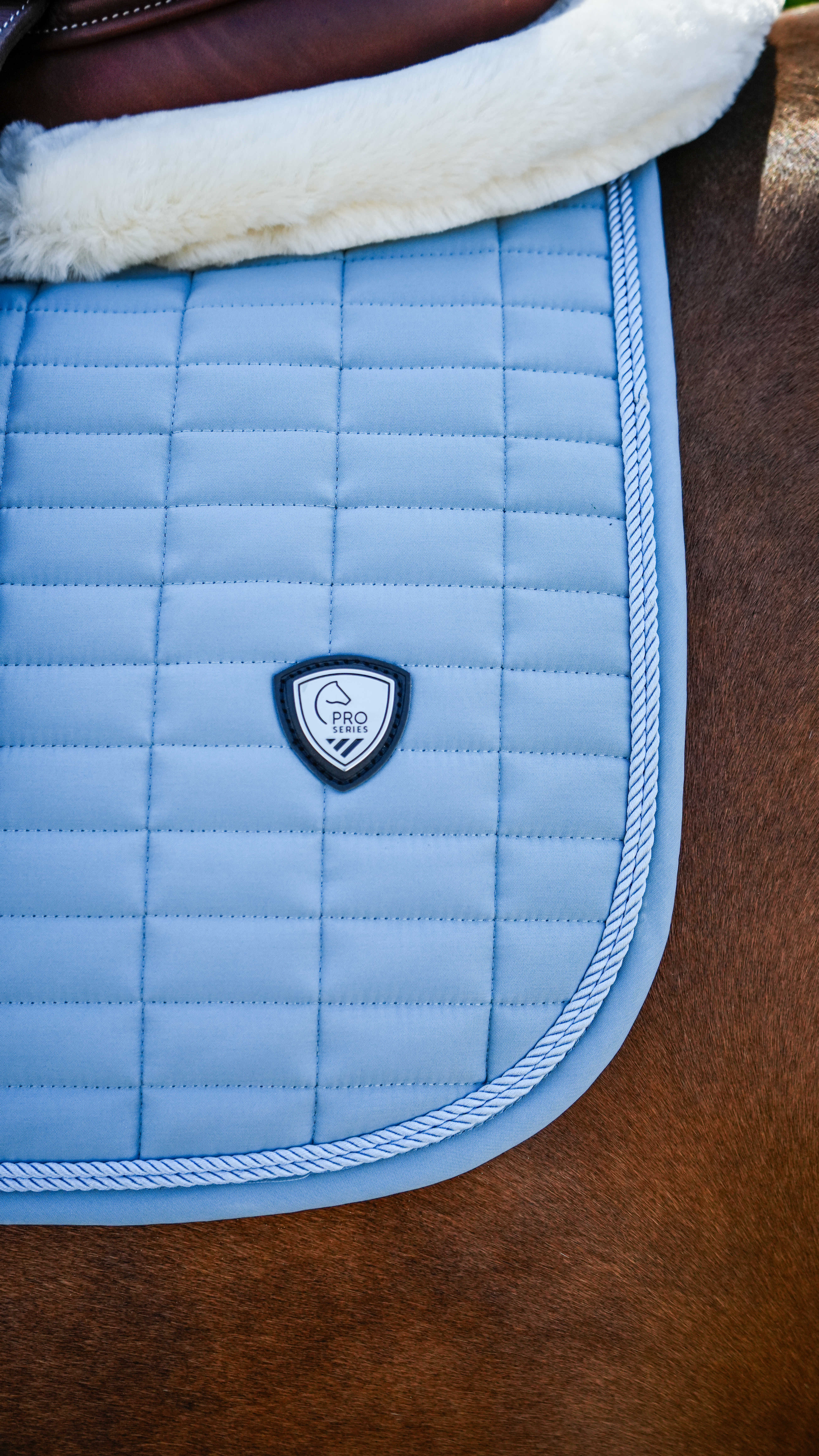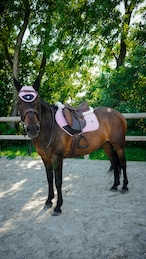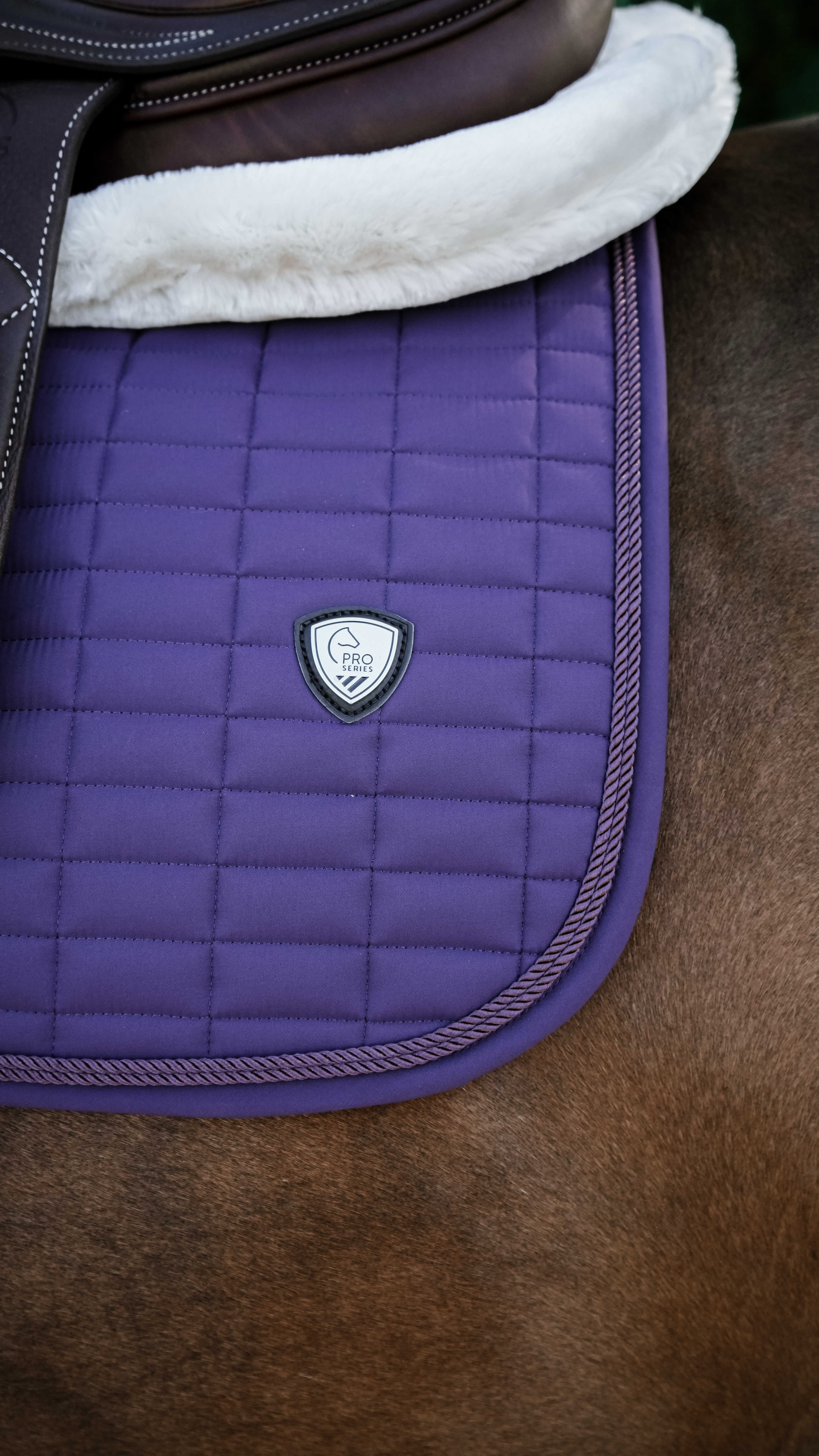 上品な仕上がりが魅力の総合鞍用サドルパッドです、洗練されたデザインで馬装をすっきりと引き立てます。