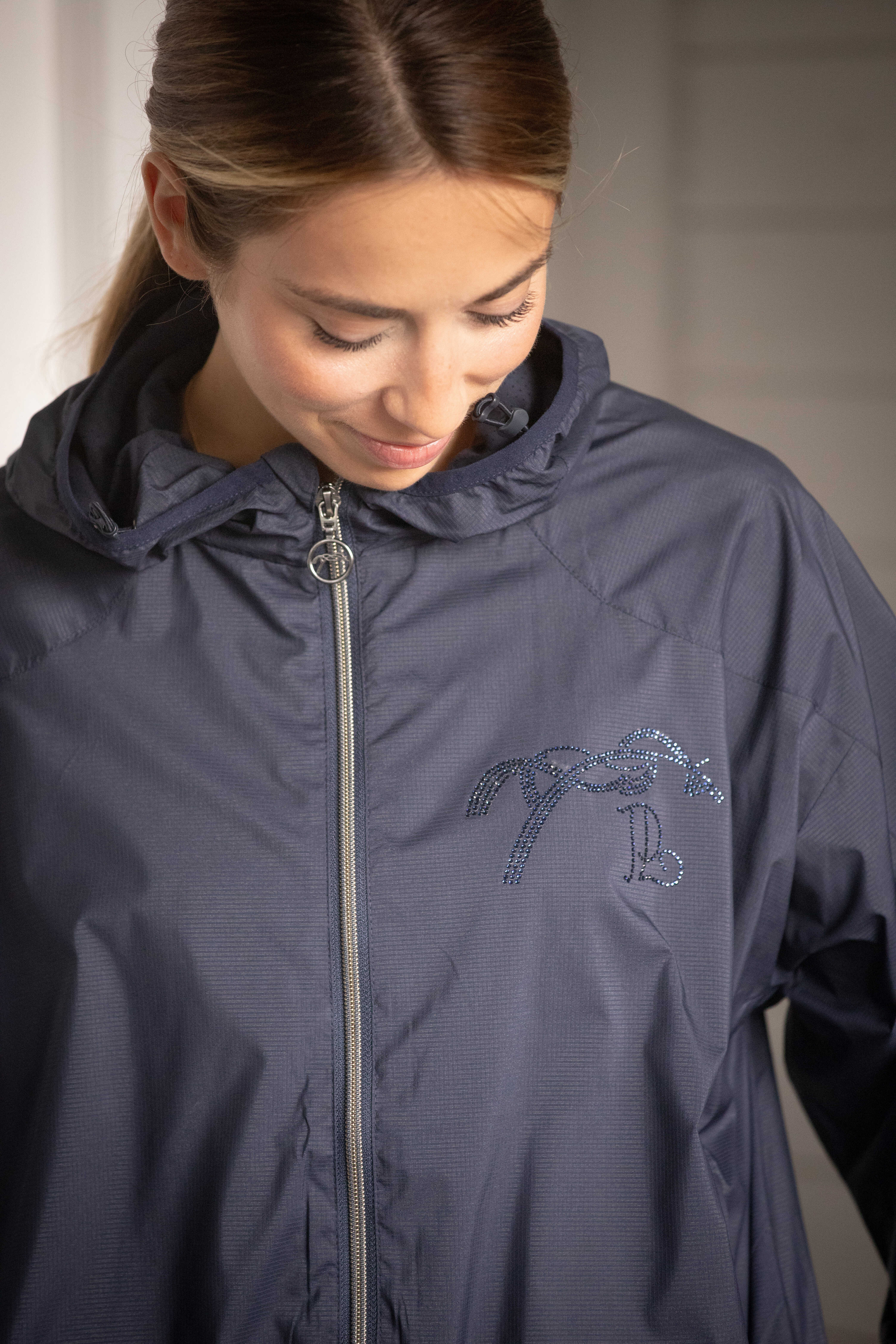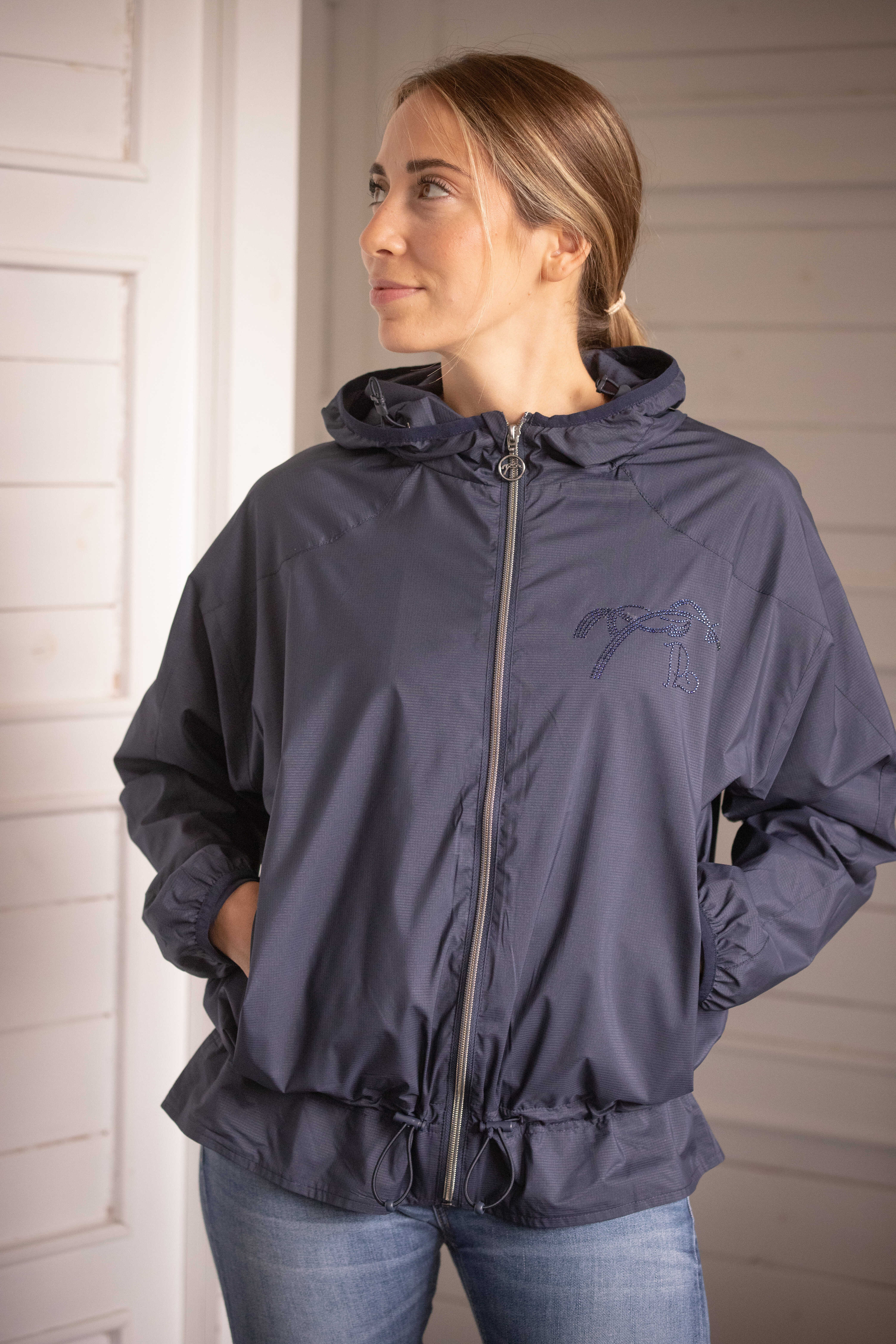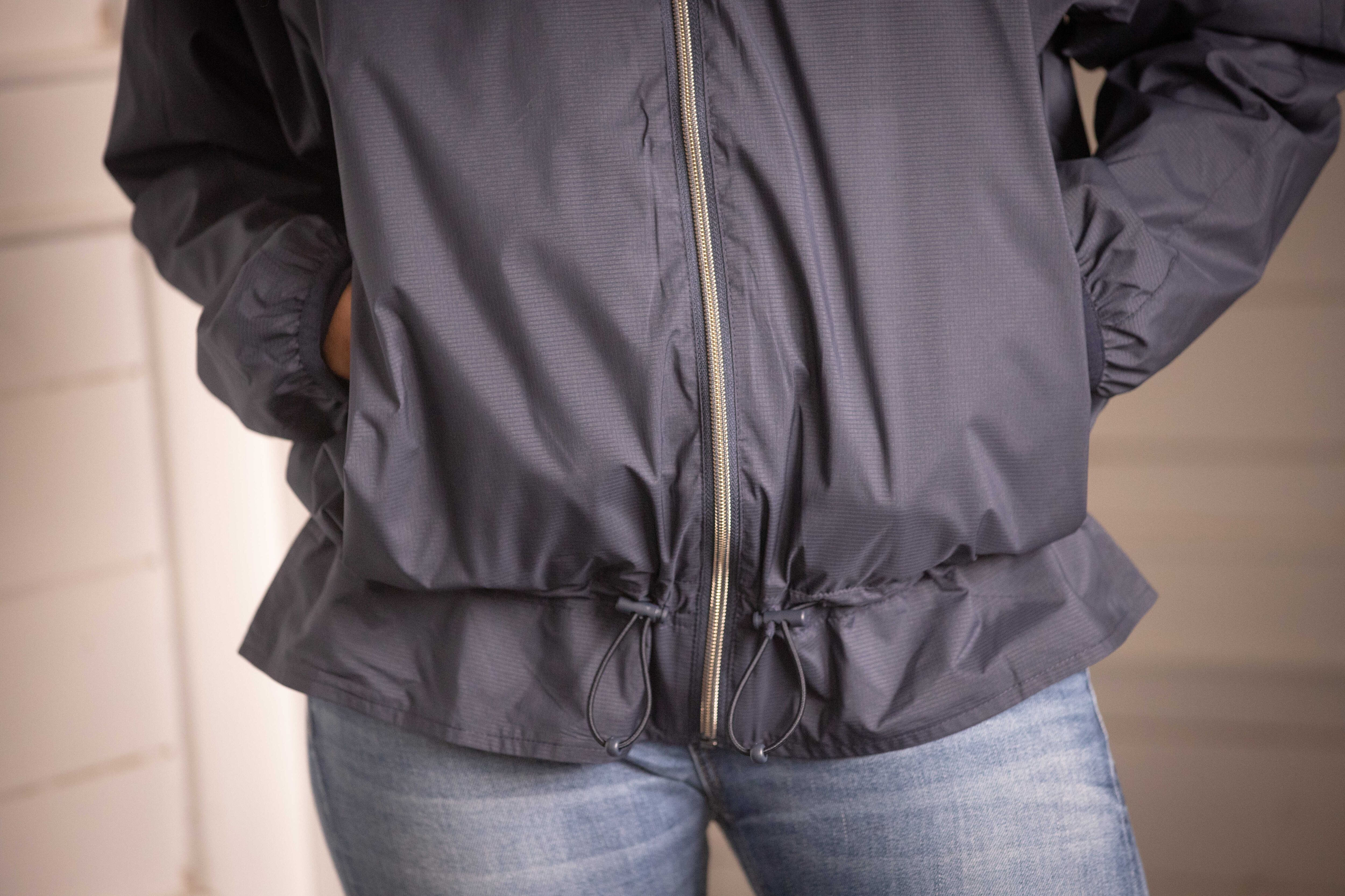 裾のドローコードでフィット感の調整ができ、シルエットもすっきりとまとまります。