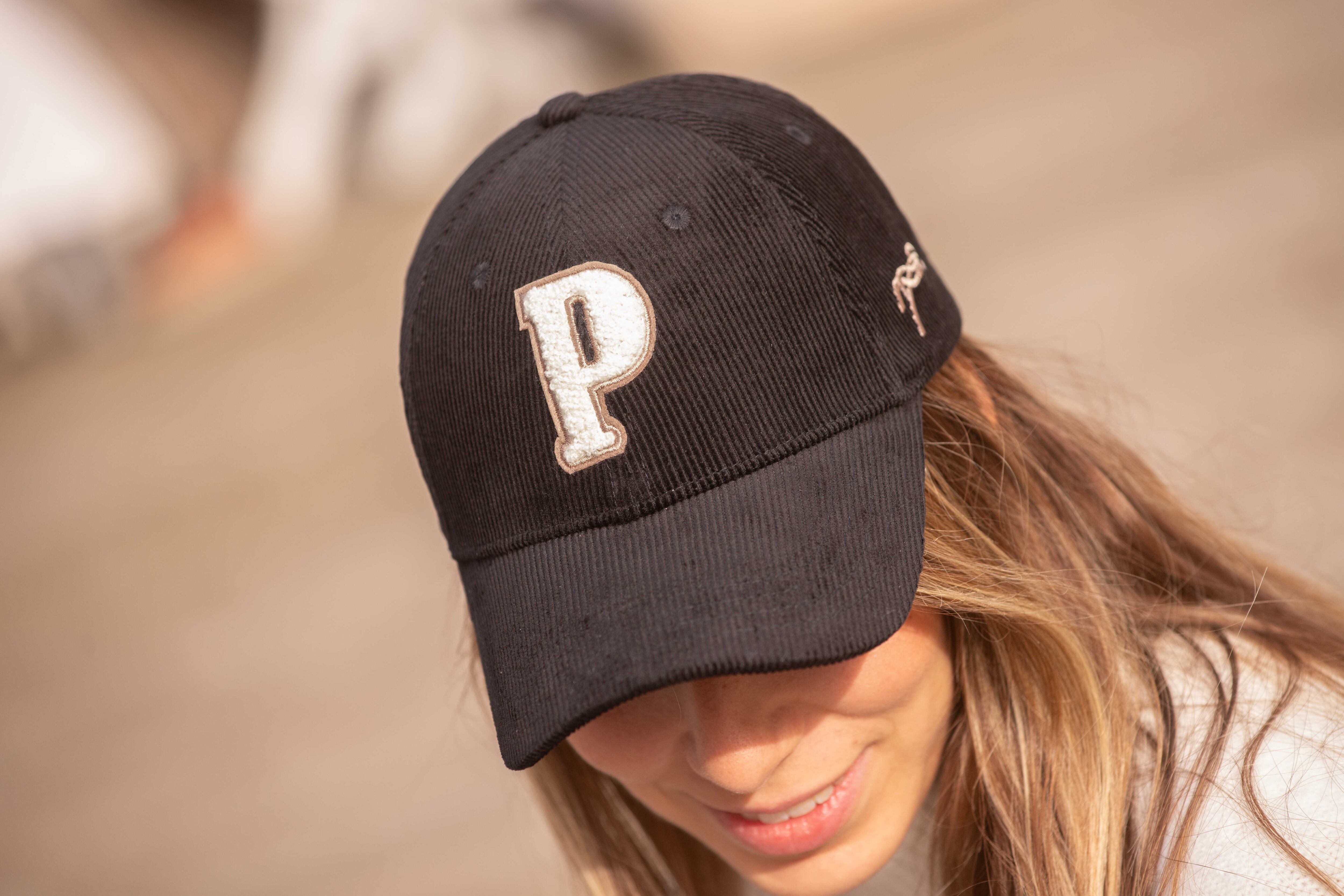 フロントにはオフホワイトのブークレ刺繍でPモチーフをあしらい、さりげなく存在感をプラスします。