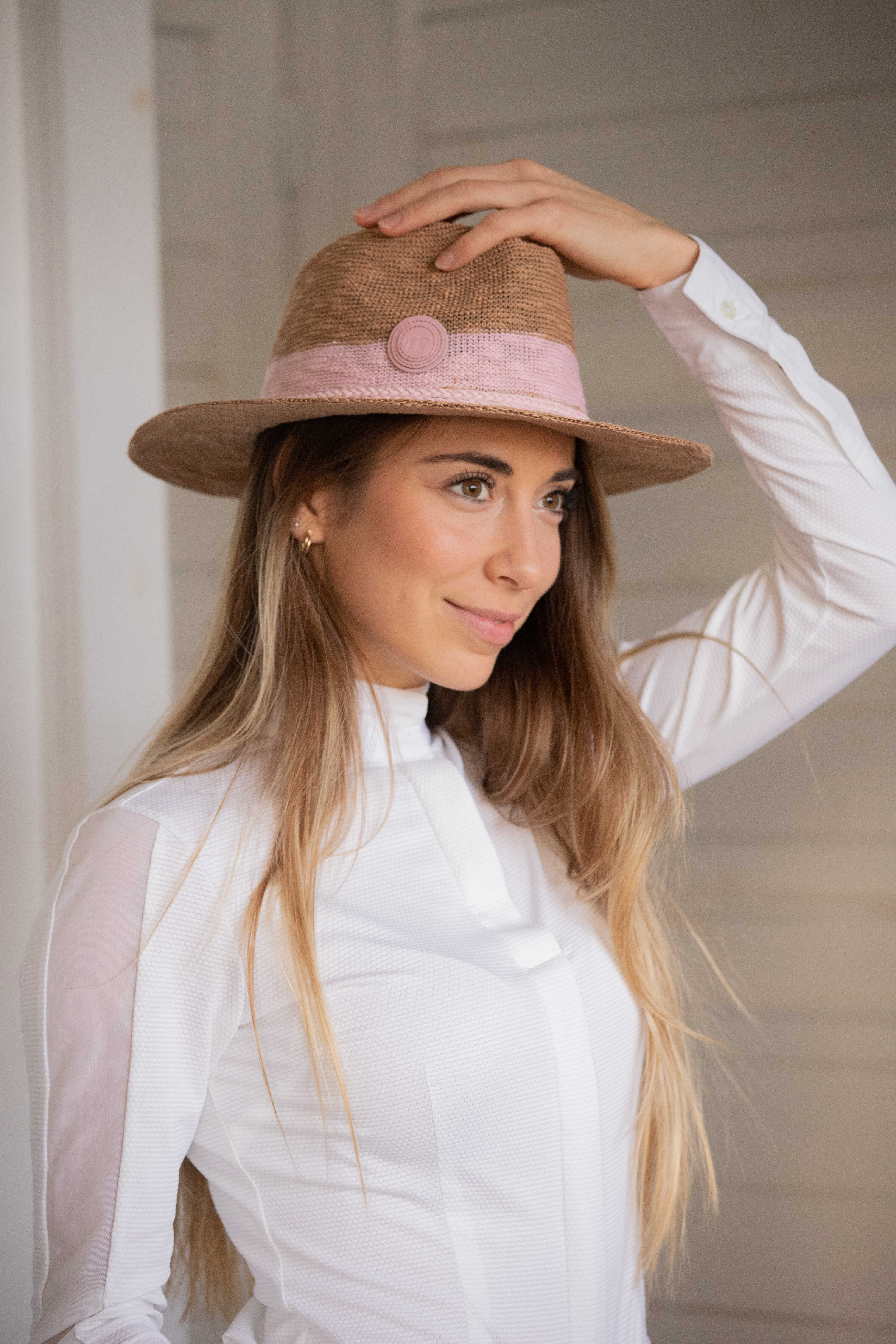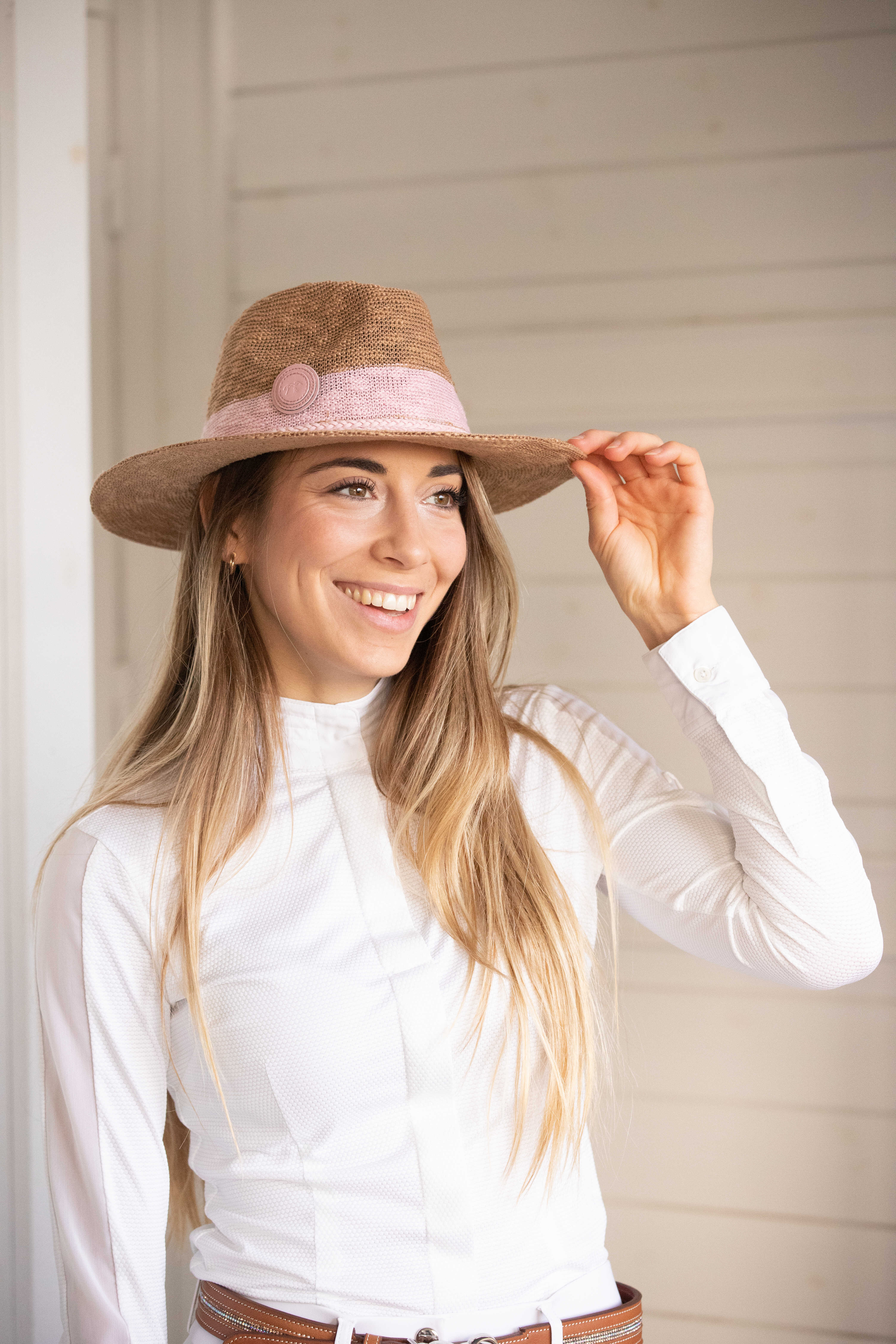 馬場での待ち時間や観覧時にも使いやすく、軽やかな被り心地で長時間でも快適に過ごせます。
